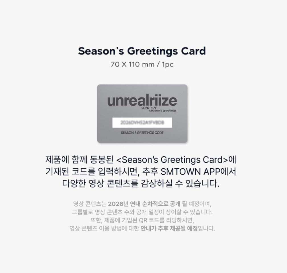 RIIZE - UNREALRIIZE 2026 Official Season’s Greetings SPECIAL EDITION + SM POB